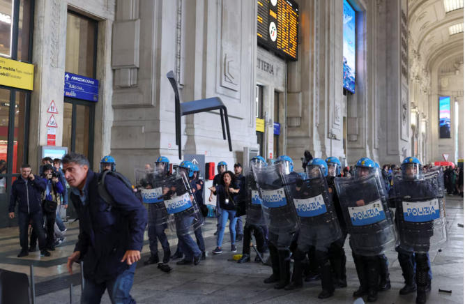 მილანის ცენტრალური სადგურის მიმდებარე ტერიტორიაზე გამართულ საპროტესტო აქციაზე პოლიციამ დემონსტრანტების წინააღმდეგ ცრემლსადენი გაზი გამოიყენა.