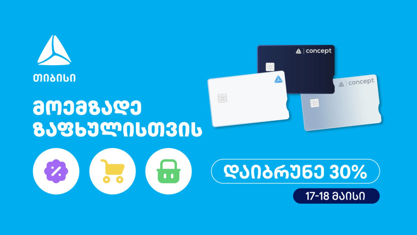 17 და 18 მაისს, ახალი ბარათის, ახალი თიბისი კონცეპტ ბარათების და ერთგული საკრედიტო ბარათის მფლობელებს, შერჩეულ ობიექტებში სპეციალურად მათთვის შექმნილი კატეგორია- მოემზადე ზაფხულისთვის, დახვდებათ, სადაც ნებისმიერი სასურველი ნივთის შეძენისას, გადახდილი თანხის 30%-ს ერთგულ ყულაბაში მომენტალურად დაიბრუნებენ.