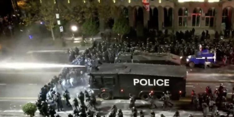 ,, რუსთაველის გამზირზე მიმდინარე პროტესტის დარბევა კვლავ ჩვეული უკანონო და არაპროპორციული ძალის გამოყენებით მიმდინარეობს. მათ შორის, არსებობს მტკიცებულებები, რომლებიც მიუთითებს აქტიური სპეციალური საშუალებების გამოყენების სტანდარტების დარღვევის შესახებ, მათ შორის, წიწაკის სპრეის დამიზნებით სახეში შესხმისა, და, ორი სპეციალური საშუალების, წყლის ჭავლისა და ქიმიური გამღიზიანებლების შერევის შესახებ.