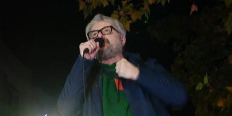მორჩა სეირნობა, სიარული. ჟივილ-ხივილი, ყველაფერი მორჩა, ვიბრუნებთ სამშობლოს! ვკეტავთ ყველაფერს. დრო აღარ გვაქვს. პასუხისმგებლობას ვიღებთ საკუთარ თავზე, ის ხალხი , ვინც მივიღეთ ყველაზე მეტიუ ხმა საქართველოს მოსახლეობისგან ვინც, თქვა, რომ ჩვენ მივდივართ ევროპაში და დიახ, ჩვენ მივდივართ ევროპაში! მივესალმები რუსთაველის გამზირზე მყოფებს, ძალიან დიდი ბოდიში ყველას შეწუხებისთვის, მაგრამ ჩვენ აქ ვდგავართ და ჩვენ აქ ვრჩებით! 24 საათი ეს აქცია იდგება აქ. ვინ არის თანახმა თქვენ შორის, არ შეუშინდეს დაჭერას არ შეუშინდეს სივიცეს, რუსულ რეჟიმს, იმიტომ რომ ეს სამშობლო ჩვენია, მომავალი ჩვენია და ჩვენ მივდივართ ევროპაში. ამ მაგისტრალზე მოძრაობა არ იქნება. ნელ-ნელა, მაგრამ მიზანმიმართულად, დაგეგმილად, მშვიდობიანად დავიკავებთ ჩვენს ქვეყანას. ეს ქვეყანა ჩვენია. ყველას ძალიან დიდი ბოდიში შეწუხებისთვის, დისკომფორტისთვის, იმისთვის, რომ ეს დღეები თავისუფლად ვერ ივლით. ყველანი ერთად ვაკეთებთ იმას, რომ მთელი ჩვენი ისტორია, მომავალი ჩვენი ისტორია ვიაროთ თავისუფლად ევროპისკენ! მაშ ასე, ჩვენ მზად ვართ ყველაფრისთვის. ვიმეორებ კვლავ, პასუხისმგებლობა ჩვენზეა, ლიდერებზე. მაგრამ ჩვენი ძალა თქვენშია. თქვენ გარეშე არაფერი არ გამოსულა, არც გამოვა არასდროს. თქვენი ხმები ჩვენ გვაძლიერებს.
