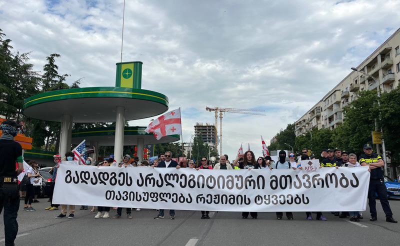 მოქალაქეები რუსთაველის გამზირისკენ მეტროთი მიდიან