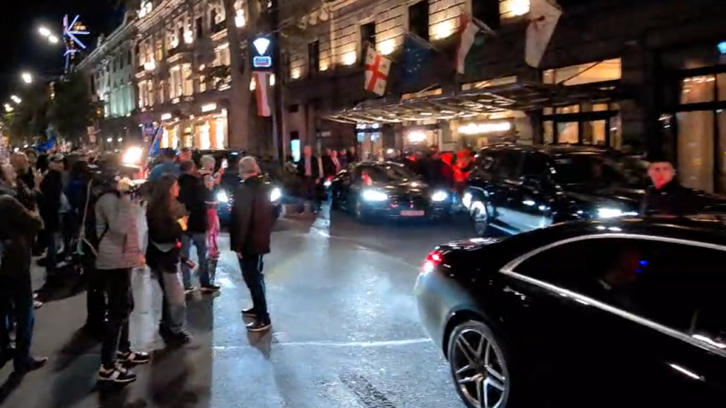 უნგრეთის პრემიერ-მინისტრი ვიქტორ ორბანი, რომელიც ცოტა ხნის რუსთაველის გამზირზე, სასტუმრო „მერიოთთან“ მივიდა, მოქალაქეებმა სტვენითა და შეძახილებით გააცილეს, როცა იგი სასტუმროს ტოვებდა.