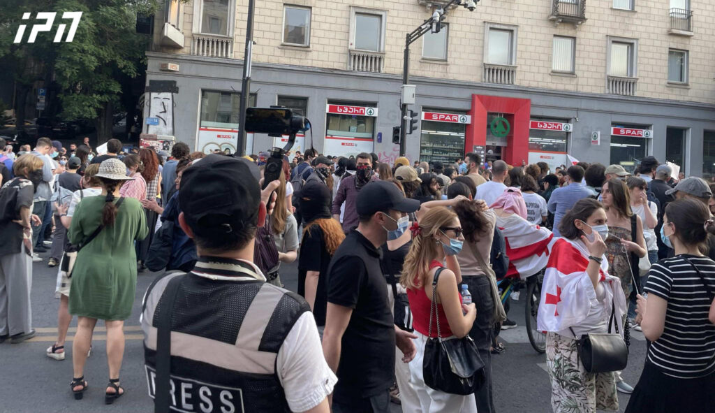 აქციის მონაწილეები სკანდირებენ: “ძირს ივანიშვილის რეჟიმი”, “ძირს უსამართლო სასამართლო”.