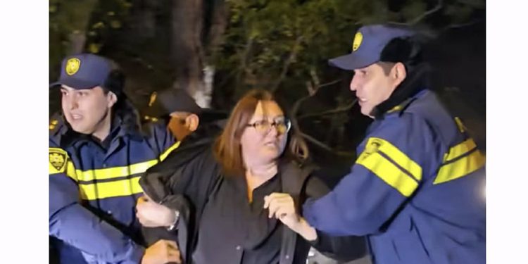 მერვე კლასის მოსწავლე, ანასტასია გუგუჩია, სოციალურ ქსელში, პედაგოგის დაკავების კადრს აქვეყნებს და წერს: