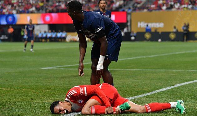 22 წლის გერმანელმა მძიმე დაზიანება პარიზელთა მეკარე ჯანლუიჯი დონარუმასთან შეჯახების შემდეგ მიიღო.