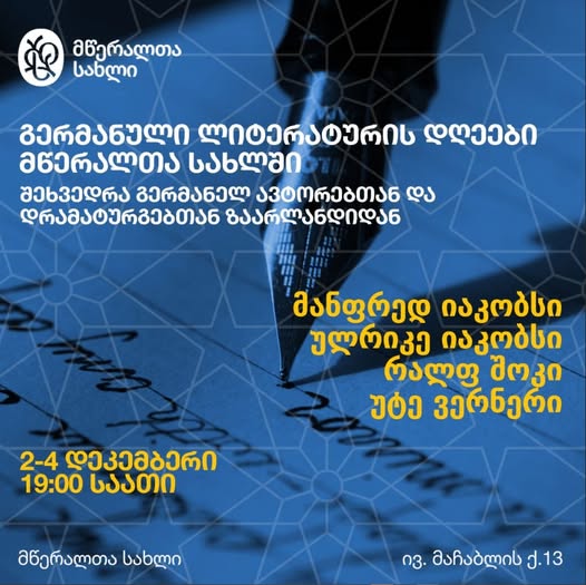 2 და 4 დეკემბერს მწერალთა სახლში გაიმართება „გერმანული ლიტერატურის დღეები“ — ორდღიანი პროგრამა, რომლის ფარგლებშიც ქართველი მკითხველები თანამედროვე გერმანულ ლიტერატურასა და დრამატურგიას ახლო რაკურსიდან გაეცნობიან. ინფორმაციას მწერალთა სახლი ავრცელებს.