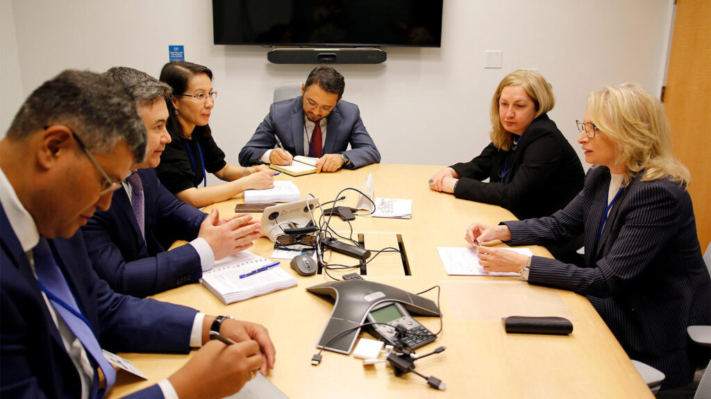 საერთაშორისო სავალუტო ფონდისა და მსოფლიო ბანკის წლიური შეხვედრების ფარგლებში, საქართველოს ეროვნული ბანკის პრეზიდენტი ნათია თურნავა და ვიცე-პრეზიდენტი ეკატერინე გალდავა ყაზახეთის ეროვნული ბანკის პრეზიდენტს ტიმურ სულეიმენოვს შეხვდნენ.