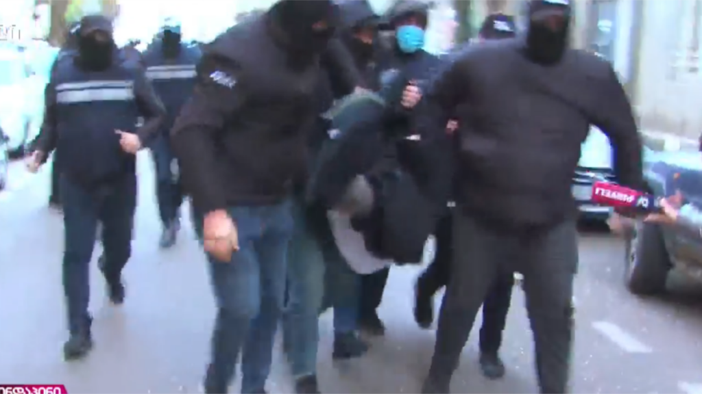 “ოლიგარქია უნდა დაემხოს! დიდება საქართველოს!” – განაცხადა ბორკილების დადების შემდეგ ნიკა გვარამიამ.