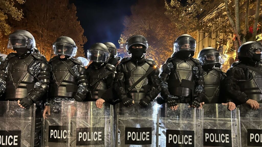 აქციების დაშლის დროს შინაგან საქმეთა სამინისტროში გამართულ ერთ-ერთ ბრიფინგზე, 29 ნოემბერს, რადიო თავისუფლებამ მინისტრის პირველ მოადგილეს, ალექსანდრე დარახველიძეს, ჰკითხა, რატომ არ აქვთ ნიღბიან სამართალდამცავებს ამომცნობი ნიშნები.