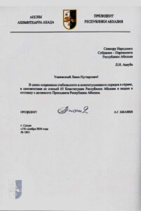 - სახალხო კრება, იგივე აფხაზეთის რესპუბლიკის პარლამენტი 2024 წლის 19 ნოემბერს ბჟანიას გადადგომის განცხადებას განიხილავს;