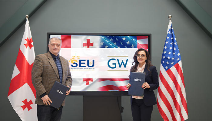 ქართულ უმაღლეს საგანმანათლებლო სივრცეში კიდევ ერთი მნიშვნელოვანი საერთაშორისო პარტნიორობა იწყება, საქართველოს ეროვნულ უნივერსიტეტ SEU-ს და ამერიკის ერთ-ერთ წამყვან ჯორჯ ვაშინგტონის უნივერსიტეტს შორის (The George Washington University https://www.gwu.edu/), თანამშრომლობის შესახებ ოფიციალური დოკუმენტი გაფორმდა.