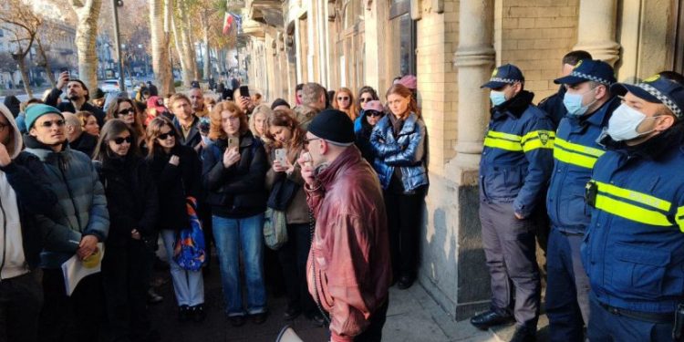 ქართული ოცნების ძალადობრივ ქმედებებს ხელოვანები თეატრალურ უნივერსიტეტთან აპროტესტებენ. სასწავლო დაწესებულების კართან ივანიშვილის პოლიცია ჩადგა. ადგილზე თეატრალური უნივერსიტეტის მოქმედი და ყოფილი სტუდენტები არიან შეკრებილი.