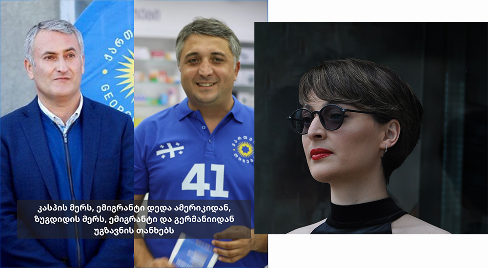 ■ ზუგდიდის მერის, დათო კოდუას და გერმანიაშია გადახვეწილი და ძმას იქიდან უგზავნის ფულს. 50 000 ლარი გამოუგზავნა წინა წელს, რაც თავად მერს აქვს დეკლარირებული. ■ კასპის მერის, ვახტანგ მაისურაძის დედა, წლებია ამერიკაშია წასული. შვილს და მის ოჯახს იქიდან ეხმარება. მერმა დედისგან ბოლო 4 წელში 97 000 დოლარის გზავნილი მიიღო.