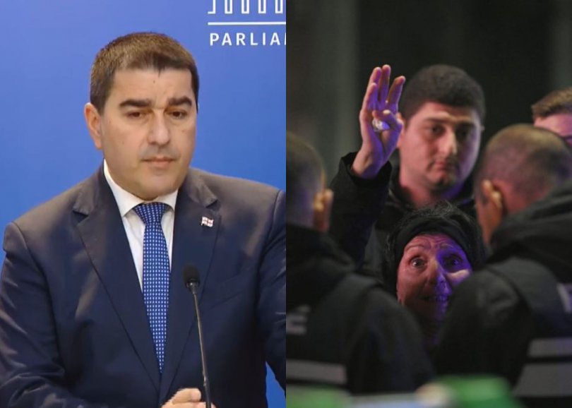 ქართული ოცნების პარლამენტის თავმჯდომარე რუსთაველის გამზირზე აქციაზე დაკავებულ 71 წლის აზა ჩილაჩავასთან დაკავშირებით დასმული კითხვის პასუხად ევროპელი მაღალჩინოსნების პასუხისმგებლობაზე საუბრობს.