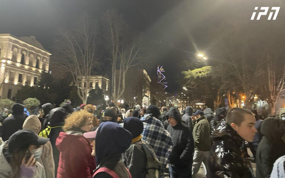 დემონსტრანტები სკანდირებენ: “საქართველო აჯანყდი”, “ხალხის ძალის გეშინოდეთ”, “არ იქნება სამართალი, არ იქნება მშვიდობა”, “ცეცხლი პოლიციურ რეჟიმს”, “ძირს რუსული პოლიცია”.