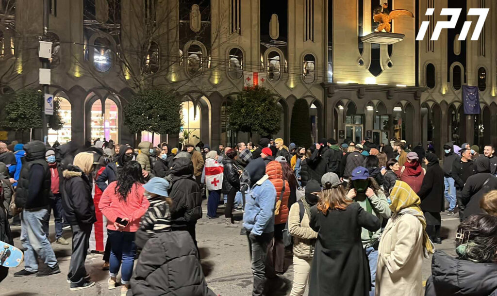 დემონსტრანტები სკანდირებენ: “არ იქნება სამართალი, არ იქნება მშვიდობა”, “საქართველოს გაუმარჯოს”, „ცეცხლი ოლიგარქიას“.