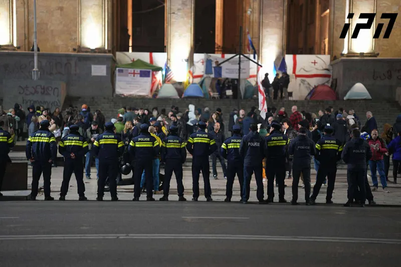 მოქალაქეები უშუალოდ პარლამენტის წინ, ტროტუარზე არიან შეკრებილები.გზის სავალ ნაწილთან კი პოლიციელები არიან მობილიზებულები.