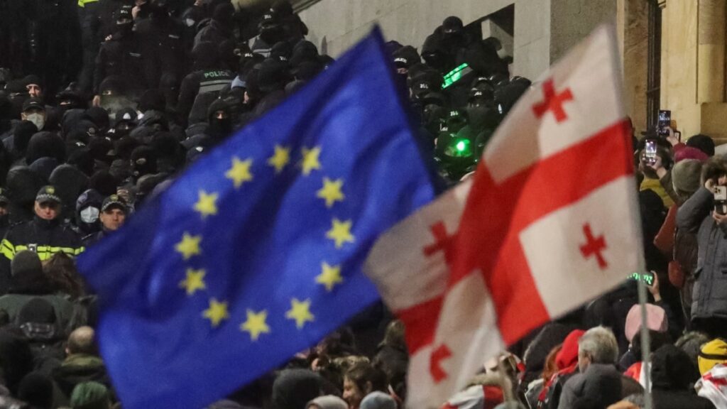 მეორე დღეა საქართველოს პარლამენტთან ევროინტეგრაციის მხარდამჭერი ხალხმრავალი აქცია იმართება. ათასობით დემონსტრანტი რუსთაველის გამზირზე პარლამენტის წინ მეორე დღეა აპროტესტებს პრემიერ-მინისტრ, ირაკლი კობახიძის გაცხადებას, რომლის მიხედვითაც საქართველოს ევროინტეგრაციის პროცესს 2028 წლამდე აჩერებენ.