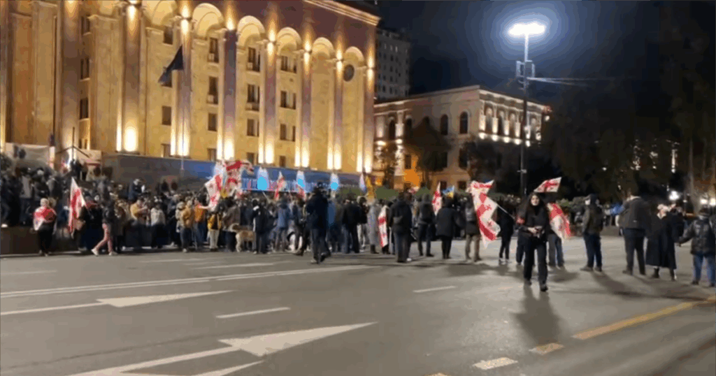 დღეს საღამოს, 29 ოქტომბერს, აქციების 336-ე დღეს თბილისში, რუსთაველის გამზირზე, პარლამენტის წინ დემონსტრანტების ნაწილმა კიდევ ერთხელ გადაკეტეს გზის სავალი ნაწილი.