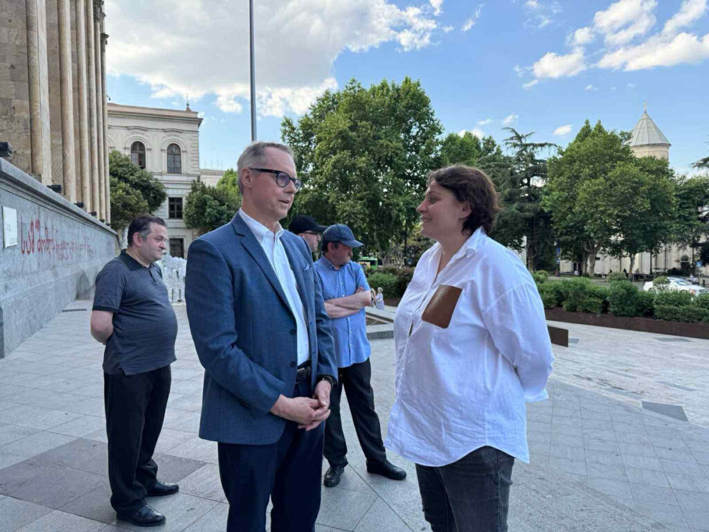 საქართველოს პარლამენტთან, სადაც 5 პირი შიმშილობს, გერმანიის ელჩი, პეტერ ფიშერი მივიდა.