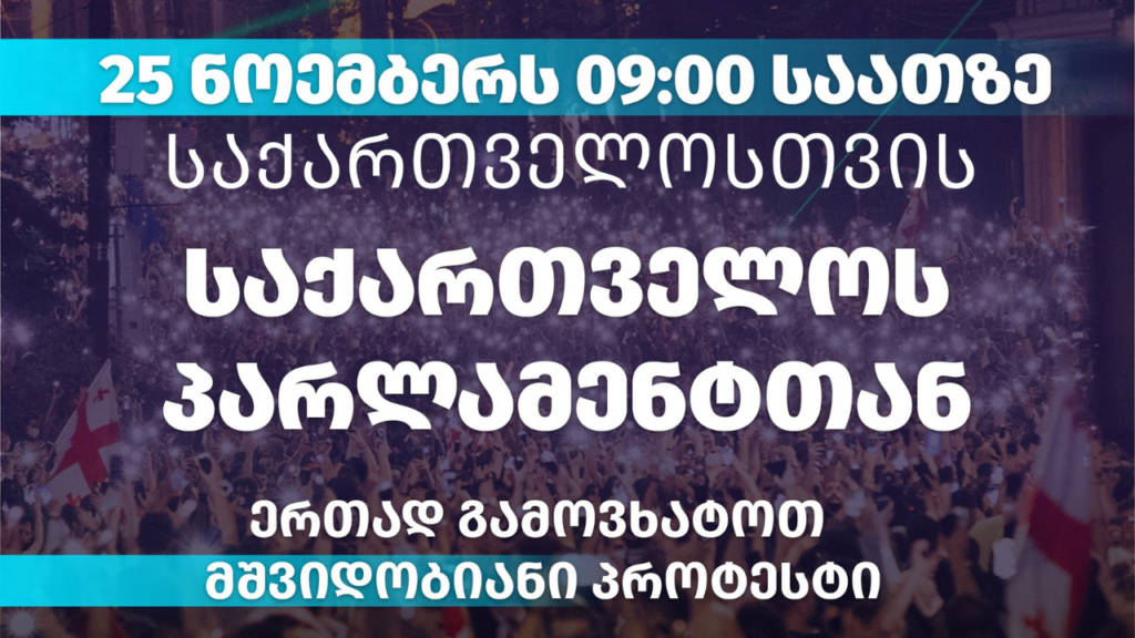 ხვალ, 25 ნოემბერს, 9:00 საათზე პარტია საქართველოსთვის პარლამენტთან საპროტესტო აქციას გამართავს.