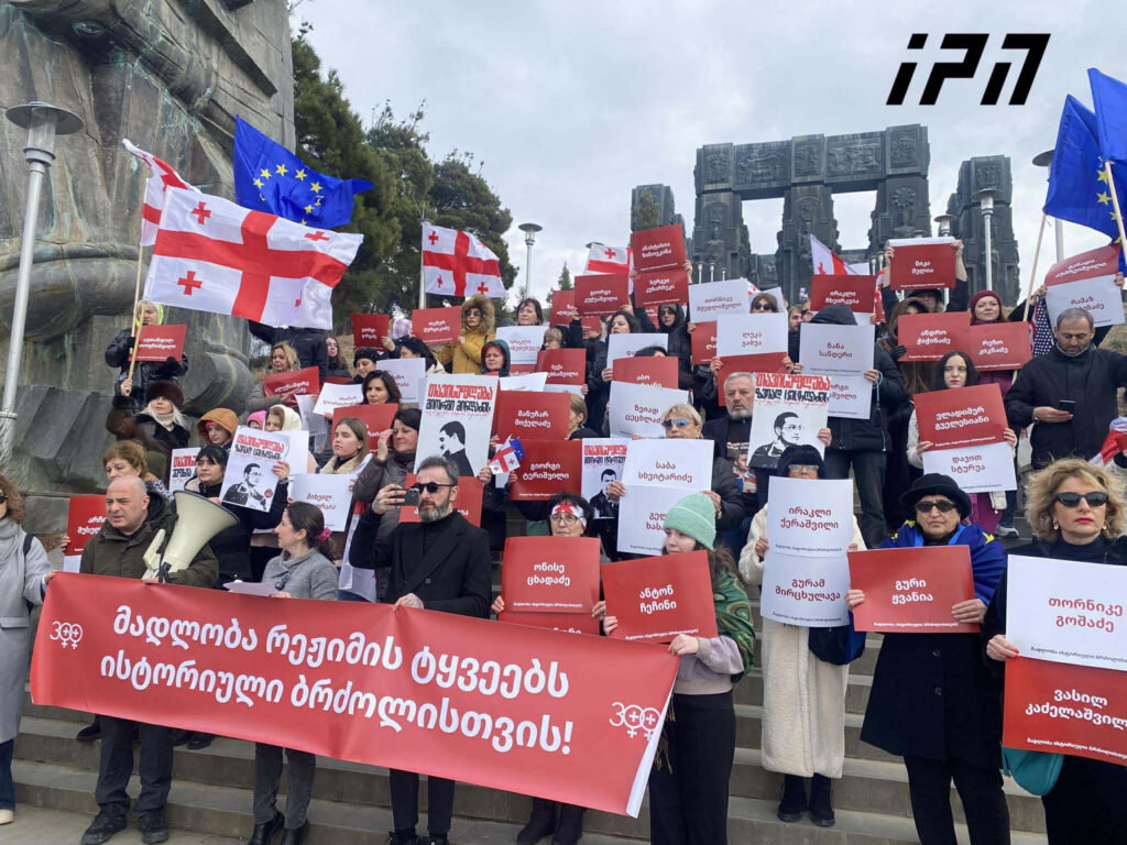 მონუმენტთან ,,საქართველოს მატიანე” აქციაზე დაკავებულების მხარდასაჭერად აქცია-პერფორმანსი გაიმართა.