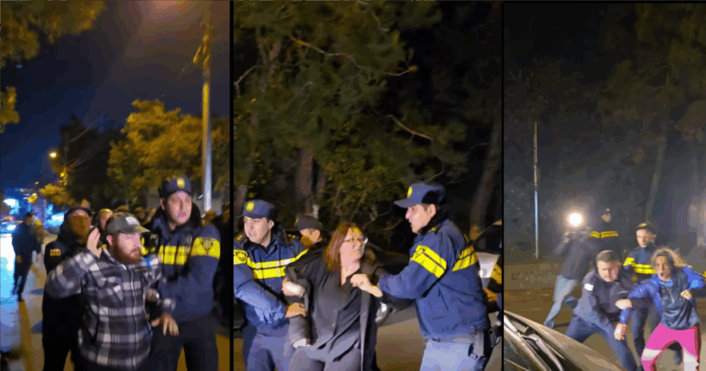 „ქვემოთ მარშის ნაწილია ჩასული და გვინდა ჩვენც ჩავიდეთ. რეაქციულები არიან პოლიციელები, უცბად შეუვარდებიან ადამიანებს და აკავებენ“, – ეუბნებოდა აქციის ერთ-ერთი მონაწილე მეგი დიასამიძე „TV პირველს“, როცა პოლიციამ კიდევ ერთი ადამიანი დააკავა – დემონსტრანტებს შორის მდგომ ახალგაზრდა კაცს ხელი ჩაავლეს და დაკავების ავტომობილისკენ წაიყვანეს.