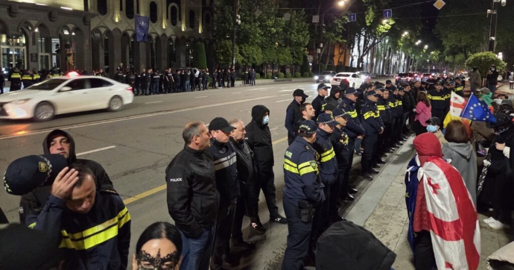 დღეს საღამოს, 14 მაისს, – პროევროპული საპროტესტო დემონსტრაციების 168-ე დღეს, – თბილისში, პარლამენტის შენობასთან შეკრებილ დემონსტრანტებს პოლიცია არ აძლევს რუსთაველის გადაკეტვის საშუალებას.