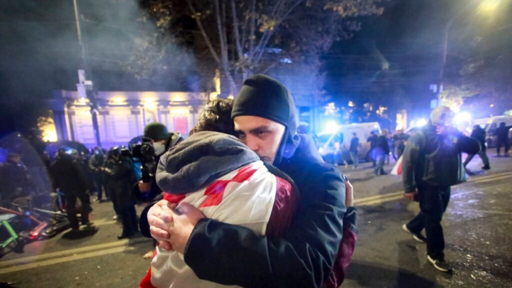 სპონტანური საპროტესტო აქცია, რომელიც მოჰყვა პრემიერ-მინისტრი ირაკლი კობახიძის განცხადებას ევროკავშირში ინტეგრაციის პროცესის „2028 წლამდე“ შეჩერებაზე, გრძელდება.