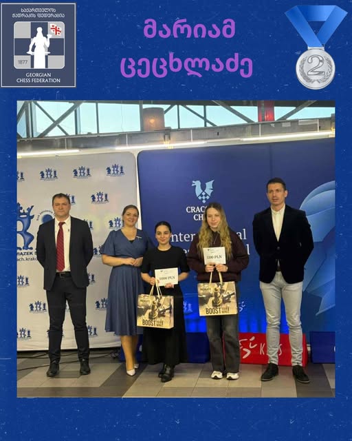 27 დეკემბრიდან 4 იანვრამდე, პოლონეთის ქალაქ კრაკოვში გამართულ ტურნირზე XXXVI Międzynarodowy Festiwal Szachowy CRACOVIA 2025 (Grupa A) მარიამ ცეცხლაძემ ქალთა შორის მეორე ადგილი დაიკავა. მწვრთნელი: დავით მაღალაშვილი.