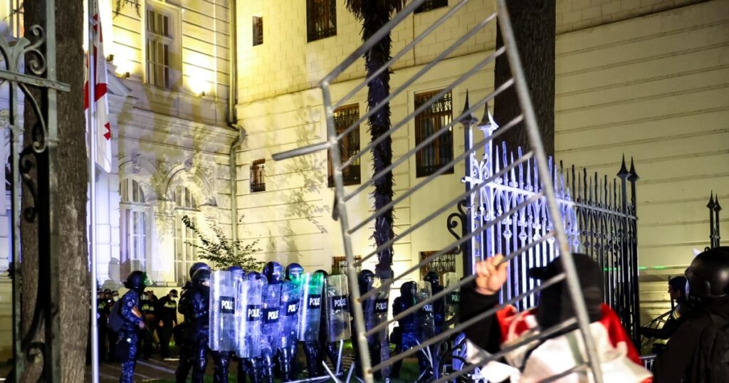 თბილისში, თავისუფლების მოედანზე შეკრებილი დემონსტრანტები საქართველოს პრეზიდენტის ადმინისტრაციის ეზოში შეიჭრნენ. ჯებირის გარღვევის შემდეგ ადმინისტრაციის შენობიდან საპოლიციო ძალები გამოჩნდნენ.