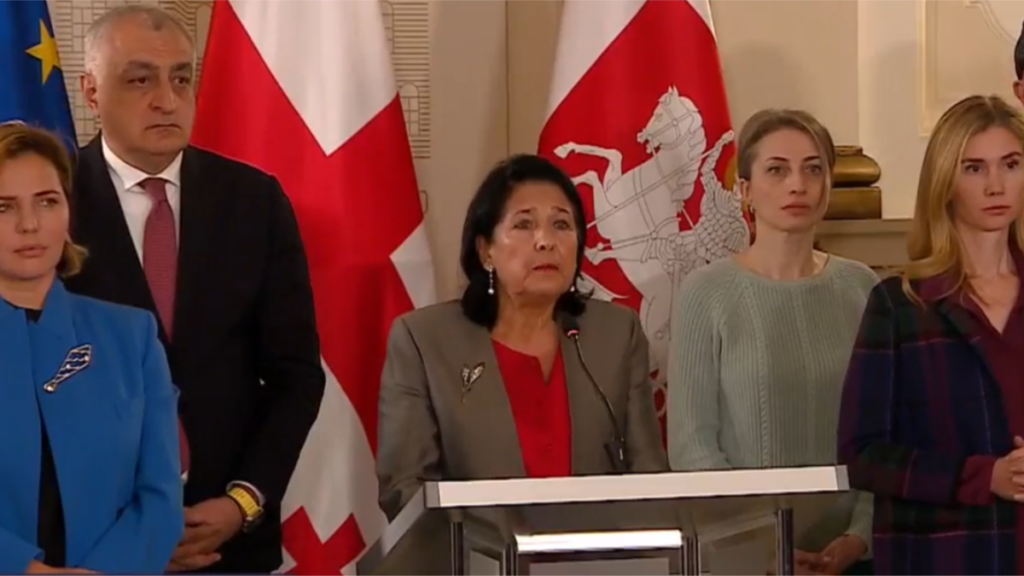 საქართველოს პრეზიდენტი, სალომე ზურაბიშვილი საპარლამენტო არჩევნების შედეგებს არ აღიარებს და საზოგადოებას მოუწოდებს 28 ოქტომბერს პარლამენტთან შეკრებით დააფიქსირონ თავისი პოზიცია არალეგიტიმურ არჩევნებთან დაკავშირებით. სალომე ზურაბიშვილი საკანონმდებლო ორგანოსთან შეკრებაზე ოპოზიციის ლიდერებთან ერთად მივა.