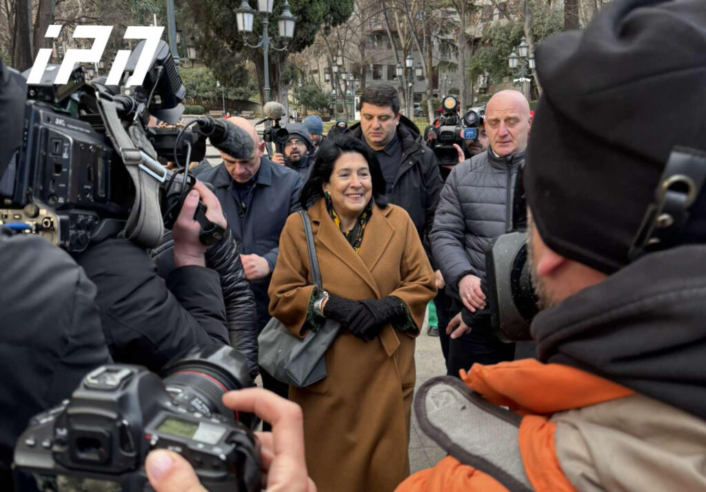 საქართველოს პრეზიდენტი სალომე ზურაბიშვილი რამდენიმე წუთით პარლამენტის მიმდებარედ, რუსთაველის გამზირზე გამოჩნდა.