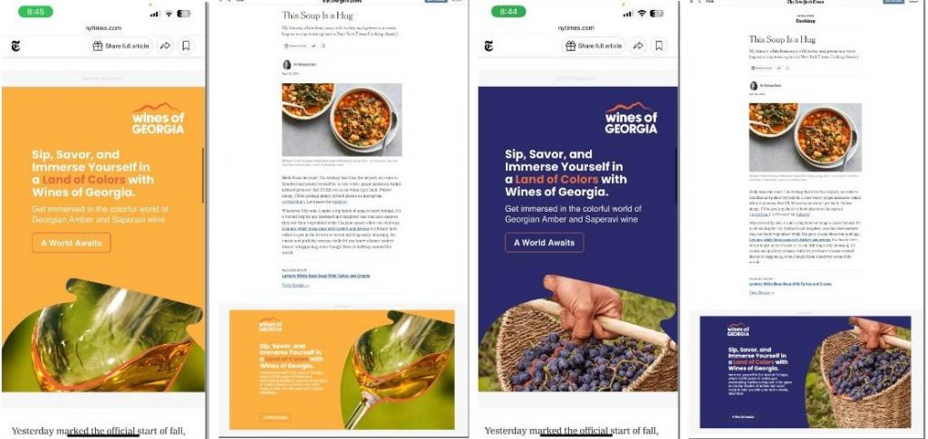 ღვინის ეროვნული სააგენტო ამერიკის შეერთებულ შტატებში ქართული ღვინის ცნობადობის ზრდის კამპანიას აქტიურად აგრძელებს. კამპანიის ფარგლებში, პრესტიჟული გამოცემის „The New York Times” ოფიციალურ ვებგვერდზე, რომელსაც კვირის განმავლობაში, საშუალოდ, 100 მლნ მომხმარებელი ჰყავს, ქართული ღვინის სარეკლამო ბანერების სლაიდშოუ განთავსდა.