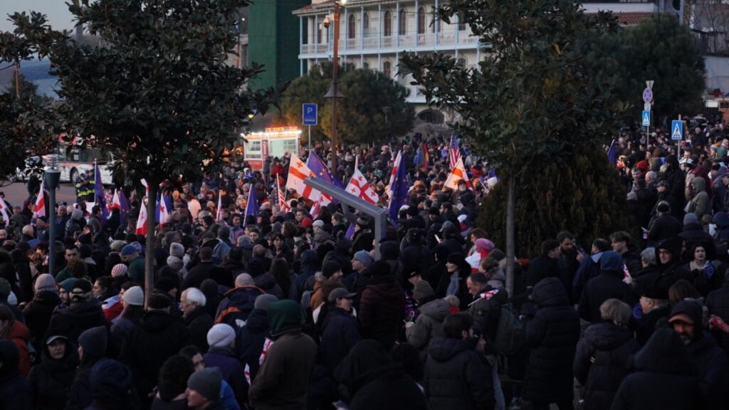 დემონსტრანტები ხელახალ არჩევნებსა და პროევროპული პროტესტისას დაკავებული ადამიანების გათავისუფლებას ითხოვენ.