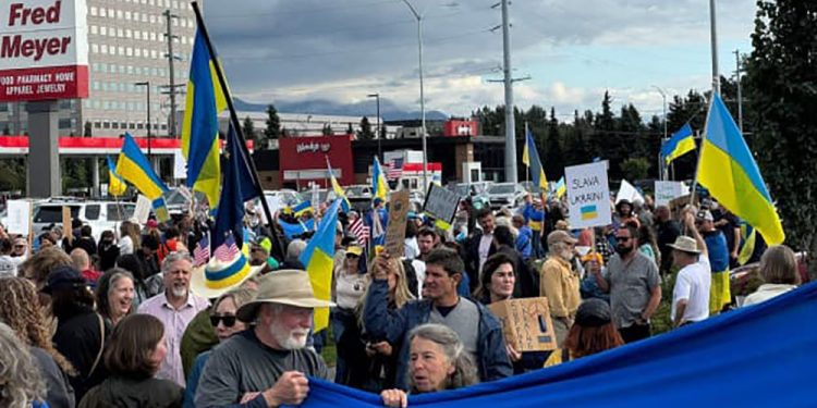 აშშ-ის ალასკის შტატის ქალაქ ანკორიჯში, სადაც აშშ-სა და რუსეთის ლიდერების, დონალდ ტრამპისა და ვლადიმერ პუტინის შეხვედრა უნდა გაიმართოს, უკრაინის მხარდამჭერი აქცია გაიმართა, – ინფორმაციას უკრაინული მედია აქციის ორგანიზატორების ვებგვერდზე, Stund Up Alsaka-ზე დაყრდნობით ავრცელებს.