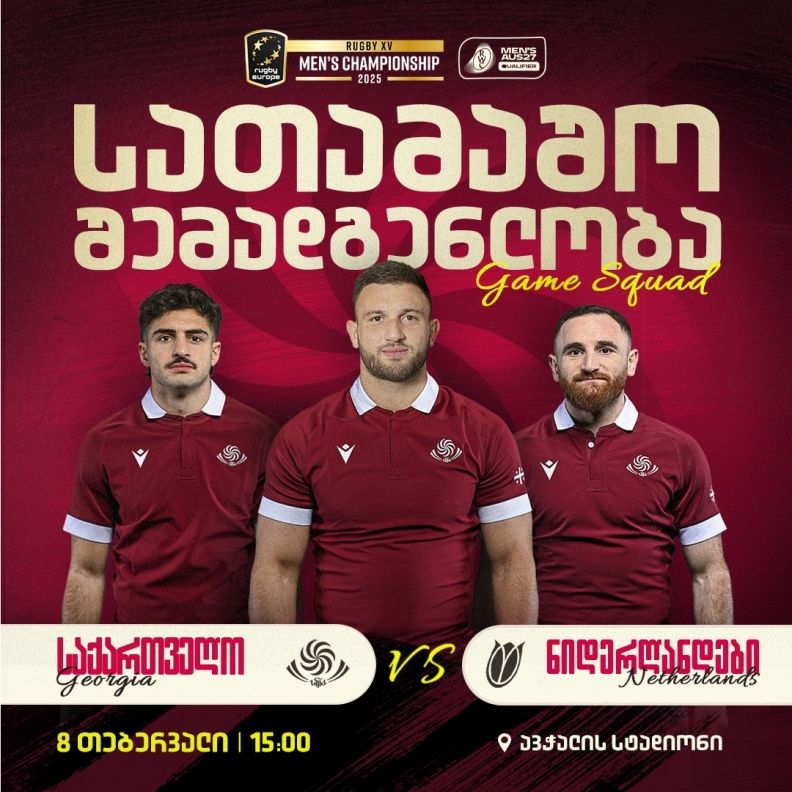 სასტარტო შემადგენლობაში ბრუნდება და ლუკა მატკავას შეუწყვილდება ვასილ ლობჟანიძე. ფრთაზე ვეტერანი სანდრო თოდუა ბრუნდება, რომელსაც რაგბი ევროპის ჩემპიონატი ყველაზე მეტჯერ, 14-ჯერ აქვს მოგებული და ნიდერლანდებთან 118-ე კეპს მოიხვეჭს. ფულბეკის პოზიციაზე ბრუნდება დავით ნინიაშვილი. სასტარტოში ადგილი შეინარჩუნეს ცენტრებმა – თორნიკე კახოიძემ და გიორგი კვესელაძემ, ასევე ლელოების-მანქანამ, ფრთა აკაკი ტაბუცაძემ, რომელსაც 43 ლელო აქვს გატანილი და 3 ლელო აშორებს მსოფლიოს საუკეთესო მელელოვეთა ათეულამდე.