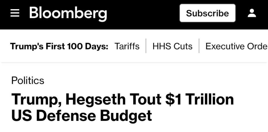 მისი განცხადებით, თავდაცვის ხარჯები ტრილიონ დოლარს მიაღწევს. ტრამპმა აღნიშნა, რომ ეს იქნება რეკორდულად დიდი სამხედრო ბიუჯეტი ამერიკის ისტორიაში. მან ეს გადაწვეტილება მსოფლიოში არსებული საფრთხეებით ახსნა. პარალელურად თავდაცვის მინისტრმა პიტ ჰეგსეტმა X-ზე მხარი დაუჭირა ტრამპის ინიციატივას და განაცხადა, რომ ახალი სამხედრო ბიუჯეტი „მალე იქნება მზად“. დღეისთვის 2026 წლის თავდაცვის ბიუჯეტი 850 მლრდ დოლარს შეადგენს.