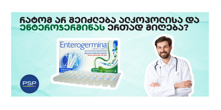 ბუნებრივია, პრეპარატების უმეტესობის მიღებისას ალკოჰოლი იკრძალება, რადგან მთელ რიგ გვერდით მოვლენებს იწვევს. ასეა ენტეროჯერმინას შემთხვევაშიც — პრობიოტიკური პრეპარატის, რომელიც ნაწლავის მიკროფლორის დარეგულირებისა და დისბიოზის სამკურნალოდ გამოიყენება.