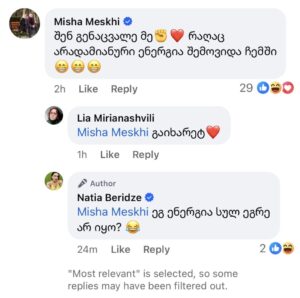 კომენტარებს თავად მიშა მესხიც გამოეხმაურა: “შენ გენაცვალე მე, რაღაც არაადამიანური ენერგია შემოვიდა ჩემში.”