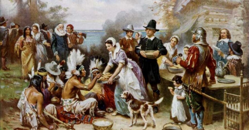 1621 წლის შემოდგომაზე, მასაჩუსეტსში კოლონიურმა ოჯახებმა პირველი წარმატებული მოსავლის აღება ქვემეხებითა და სხვადასხვა ცეცხლსასროლი იარაღით აღნიშნეს. ხმაურმა მკვიდრი ამერიკელები შეაშინა და დგილისკენ მომხდარის გამოსაკვლევად მიაშურეს.