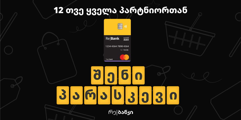15-დან 27 ნოემბრის ჩათვლით, რე|ბანკის 3000-ზე მეტ პარტნიორ ობიექტში 12-თვიანი გადანაწილება იქნება, რაც იმას ნიშვნავს, რომ ამ პერიოდის განმავლობაში, ნებისმიერი გადახდა გაზრდილ ვადაზე გადანაწილდება, თანაც ყველანაირი დანამატის გარეშე, რაც ეფექტურ 0%-ს ნიშნავს.