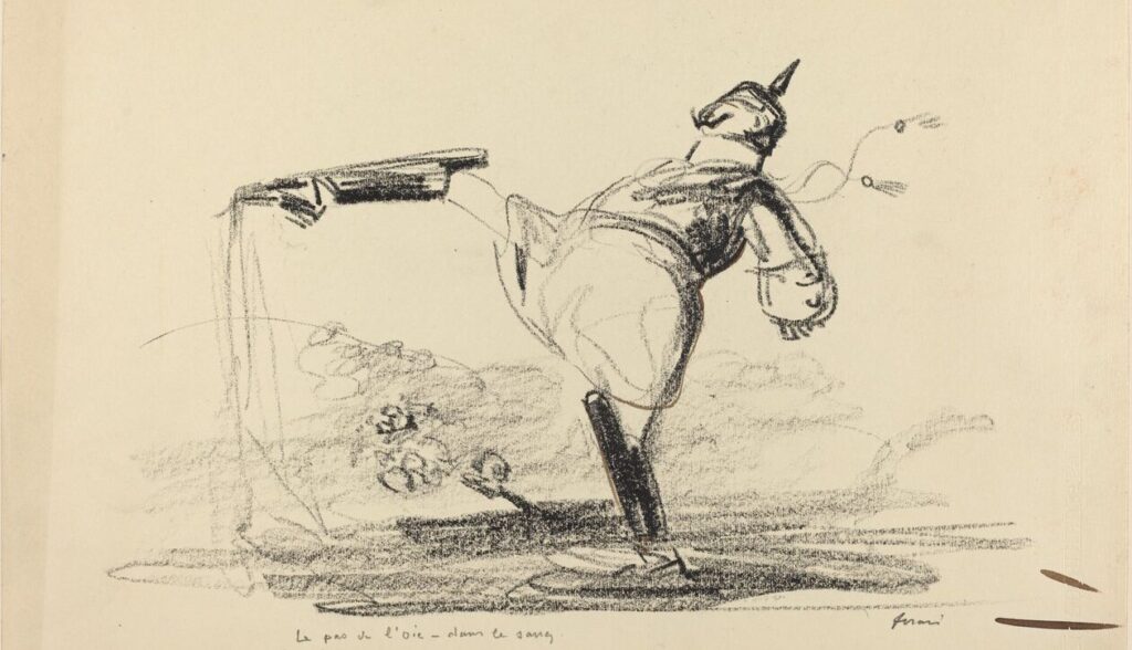 გერმანელი ჯარისკაცები მარშირებენ Goose Step-ის ნაბიჯებით (მაღალი, მკაცრი სამხედრო ნაბიჯი) ნაცისტური რეჟიმის დროს. აღლუმზე მარშირების გერმანელების მიერ დამკვიდრებულმა ამ უჩვეულო სტილმა მოგვიანებით უსიტყვოდ მორჩილების გადატანითი მნიშვნელობა შეიძინა