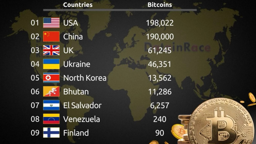 2025 წლის მონაცემებით, ბიტკოინის ყველაზე მეტი რეზერვი აშშ-ს აქვს და ის 198 022-ს შეადგენს , მეორე ადგილზეა ჩინეთი, მესამეზე კი დიდი ბრიტანეთი.