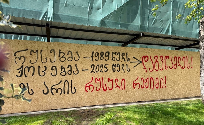 რუსთაველის გამზირზე, საპროტესტო წარწერა გაჩნდა – 9 აპრილის მემორიალის სიახლოვეს, კედელზე შემდეგი შინაარსის წარწერაა გაკეთებული. რუსებმა – 1989 წელს, ქოცებმა – 2025 წელს დაგვწამლეს! ეს არის რუსული რეჟიმი.