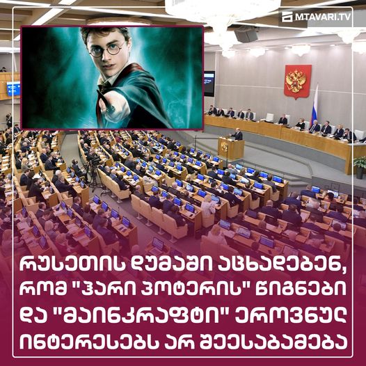 რუსეთის სახელმწიფო სათათბიროში აცხადებენ, რომ წიგნების სერია ჰარი პოტერის შესახებ და კომპიუტერული თამაში “მაინკრაფტი” რუსეთის ეროვნულ ინტერესებს არ შეესაბამება.