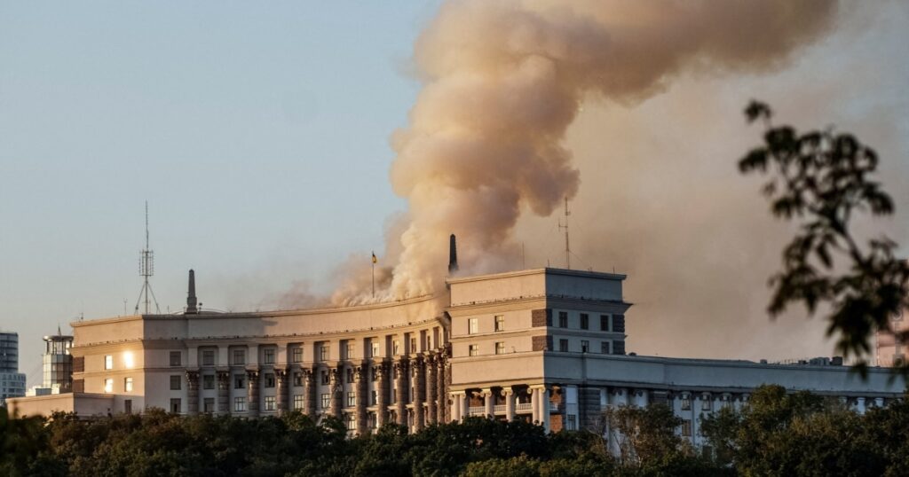 განცხადებაში ისინი პირდაპირ არ ახსენებენ უკრაინის მინისტრთა კაბინეტის შენობას, სადაც დაბომბვამ ხანძარი გამოიწვია, მაგრამ წერენ, რომ „კიევის საზღვრებში არსებულ სხვა ობიექტებზე დარტყმები არ განხორციელებულა“.