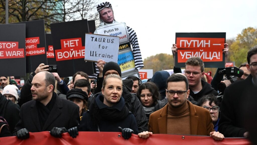 17 ნოემბერს ბერლინში იმართება რუსეთის ოპოზიციის წარმომადგენლების, ილია იაშინის, იულია ნავალნაიას და ვლადიმირ კარა-მურზას მიერ ორგანიზებული მსვლელობა ომის წინააღმდეგ. დემონსტრანტები მოითხოვენ უკრაინიდან რუსეთის ჯარის გაყვანას, ვლადიმირ პუტინის, როგორც ომის დამნაშავის გასამართლებას და ყველა პოლიტიკური პატიმრის გათავისუფლებას რუსეთში.