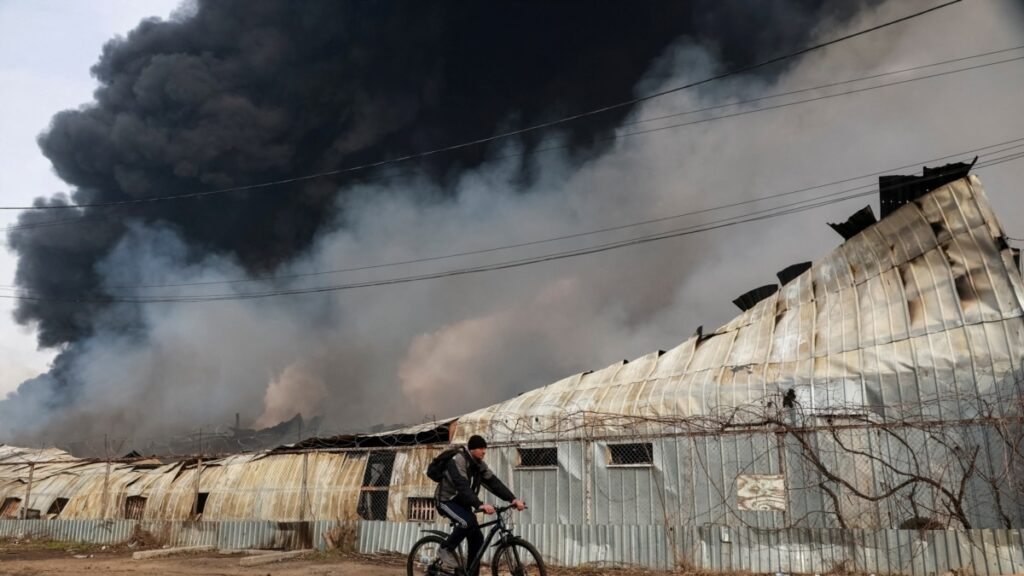 რუსული დრონით დარტყმის შედეგად ხარკოვის ოლქში ხანძარი გაუჩნდა ერთ-ერთ საწარმოს.
