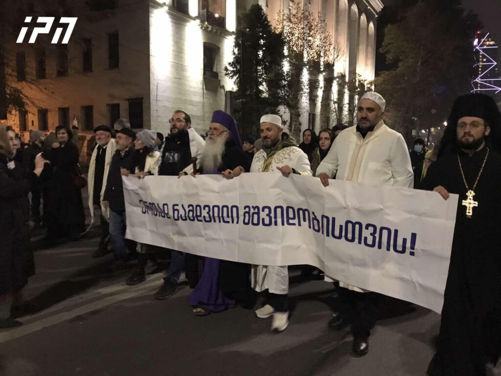 რუსთაველის გამზირზე მიმდინარე საპროტესტო აქციას რესპუბლიკის მოედნიდან მსვლელობით სხვადასხვა რელიგიური კონფესიის სასულიერო პირებიც შეუერთდნენ.
